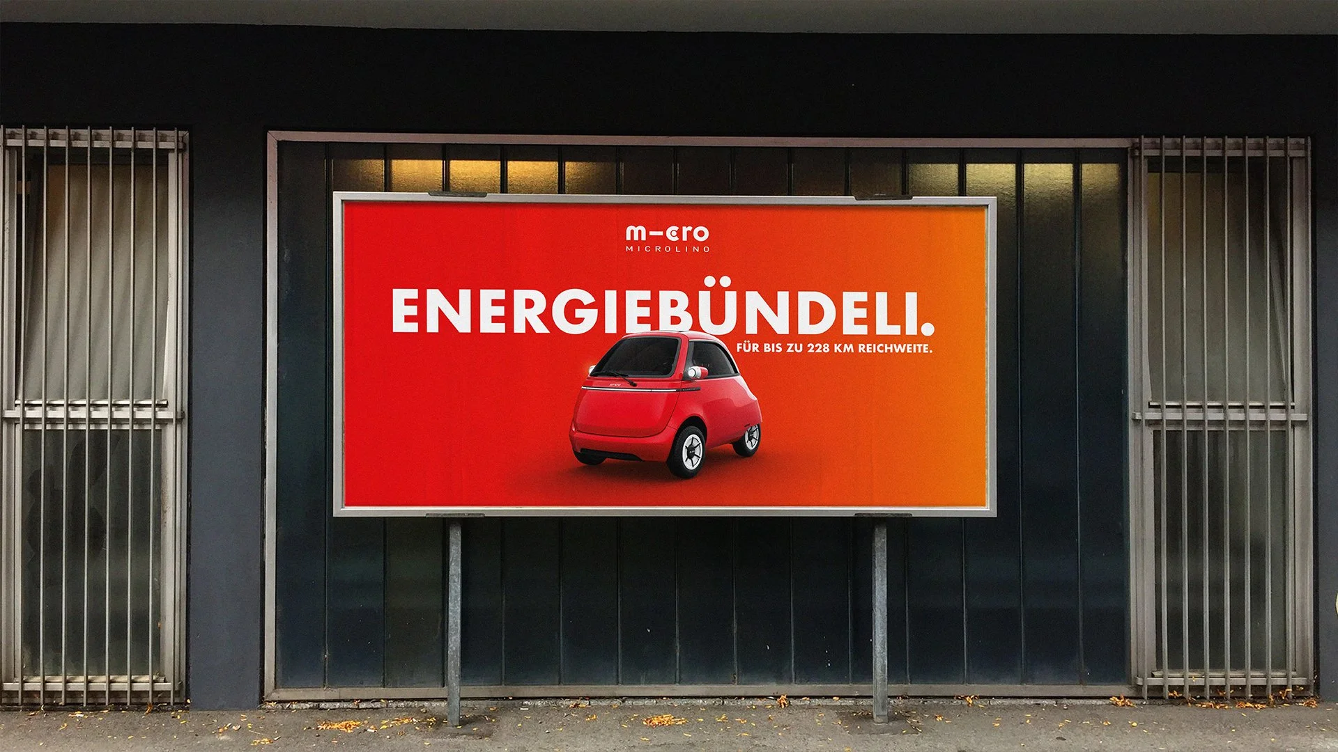 Eine neue City-Romance an der Wand: unsere Plakatkampagne für Microlino. Weniger Bolide und mehr Stadtgefühl. Für das Original Schweizer Auto machen wir mit unseren Original Schweizer Verniedlichungen aus USPs Sympathie. Und weil 95% der Wege keine 24 Liter für 100km brauchen, wird Downsizing auf einmal zum Upgrade. Clever fahren kann halt auch cute sein und ein kleines bisschen geil.